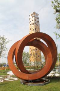 Für das Gartenschaugelände in Schwäbisch Gmünd wurde ein "Trauzimmer" im Grünen entworfen. Die symbolischen Trauringe wurden in unserer Werkstatt gefertigt.